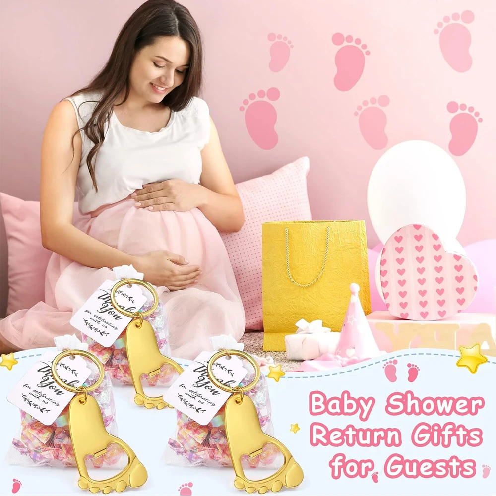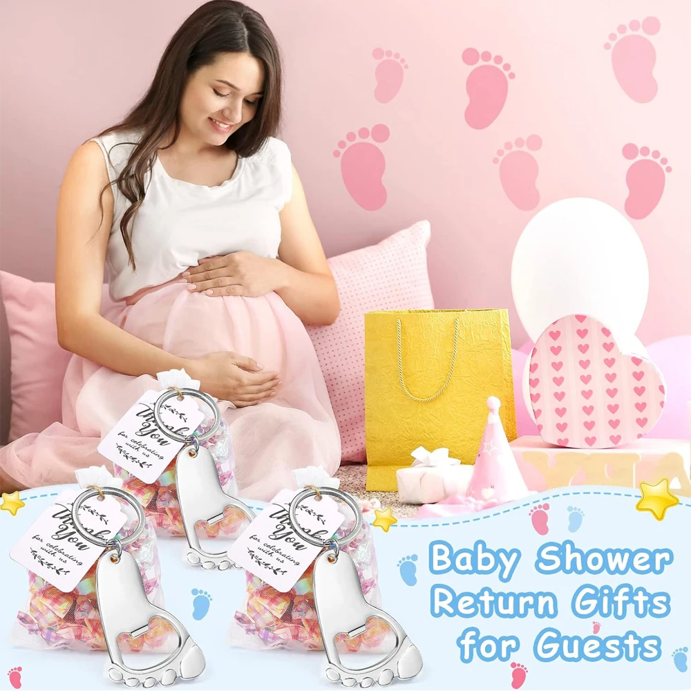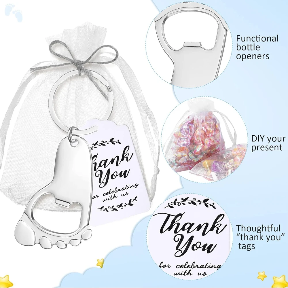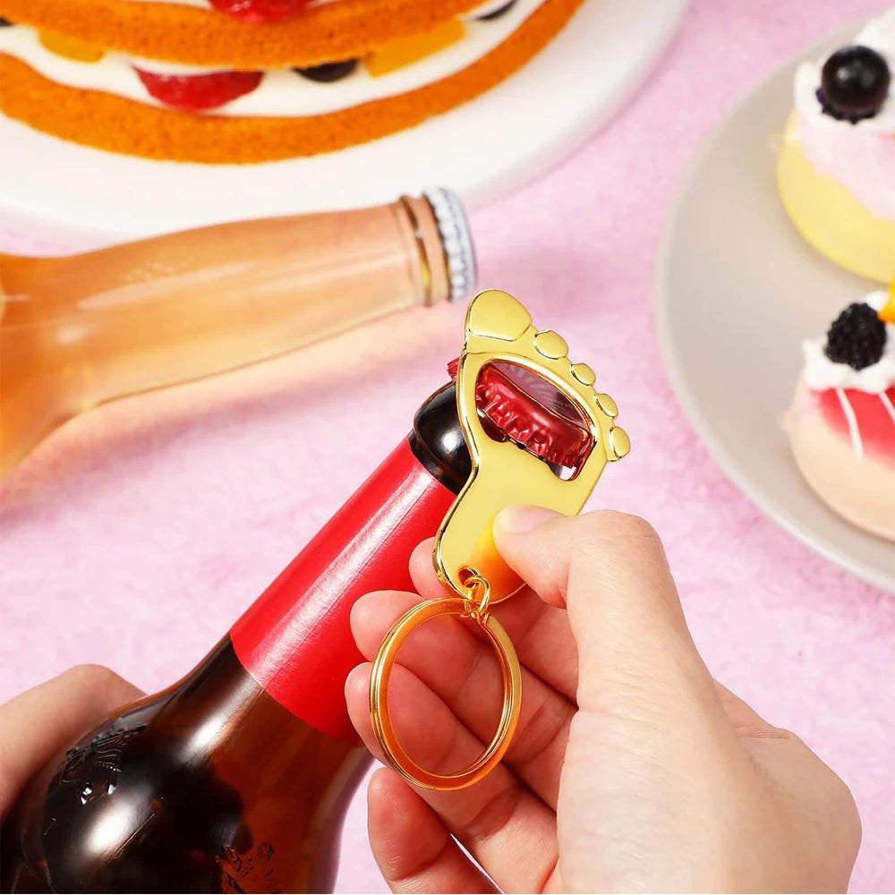 4. Cute Design: The design of this baby foot bottle opener adopts a cute baby footprint shape, which is truly suitable for your baby welcome party supplies. It can not only serve as an easy to carry decorative keychain, but also a practical bottle opener, making it a great gift/gift for guests