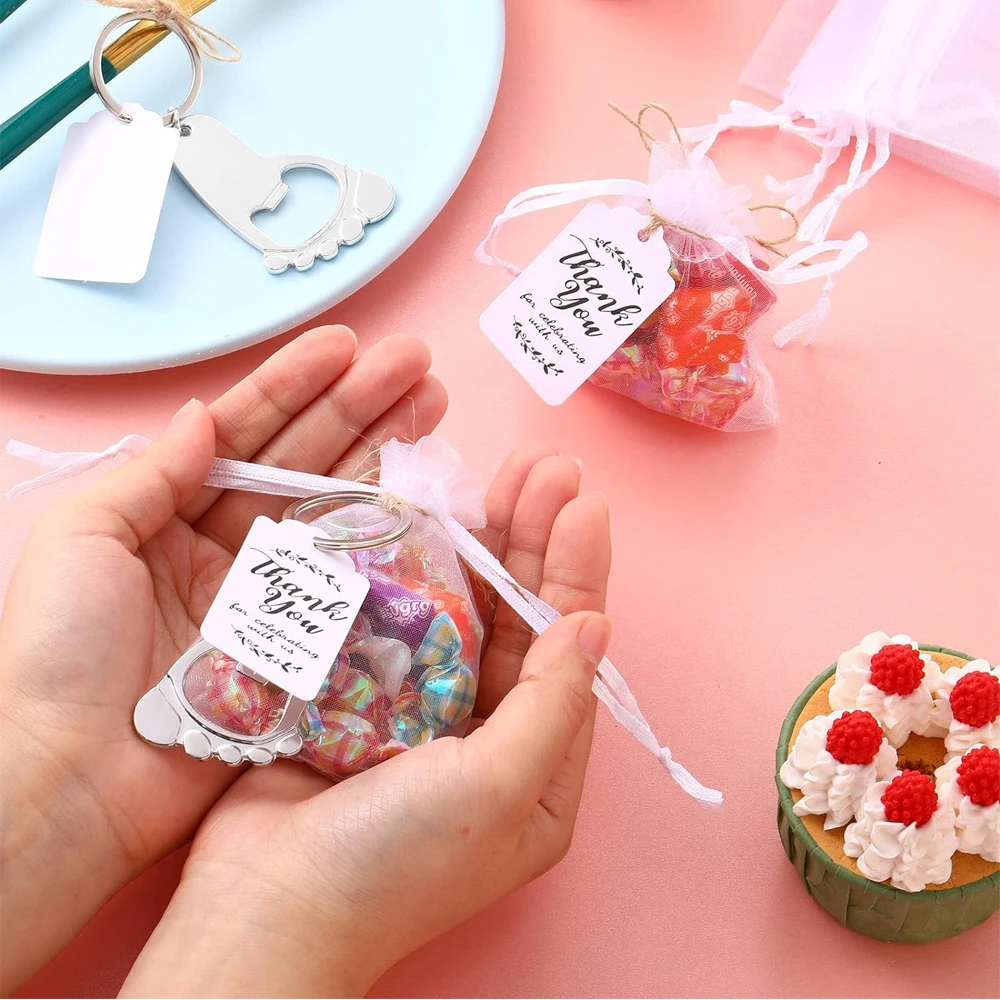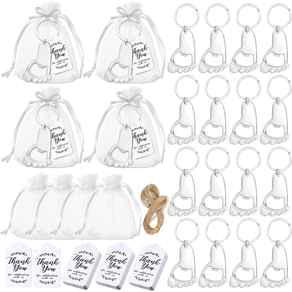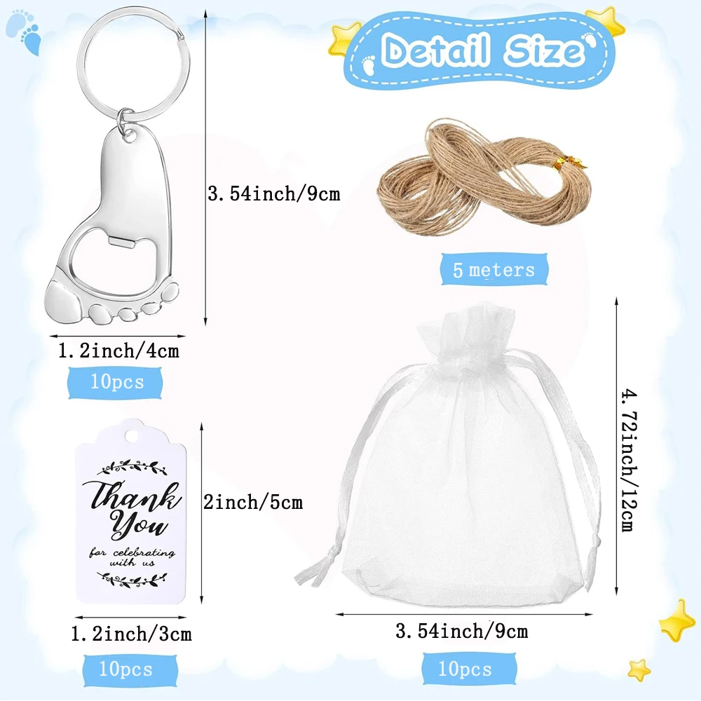 10 set baby shower gift set small foot bottle opener keychain souvenir with hard gauze bag thank you label themed party gift