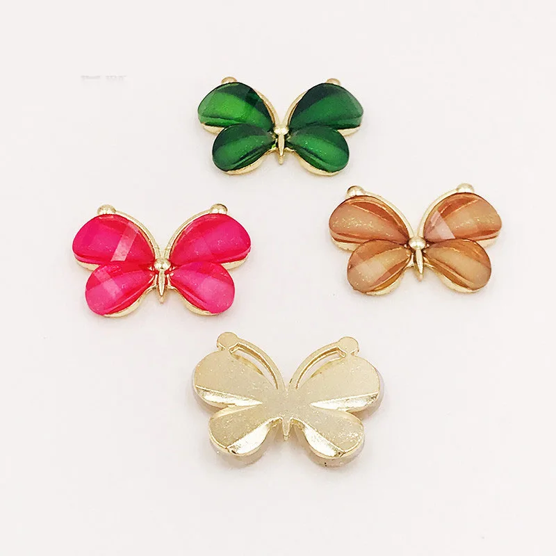 10PCS/Lot 2.2*2.8CM Resin Alloy Flatback Butterfly Button For DIY Clothing Applique Metal Wedding Embellishment Jewelry Craft