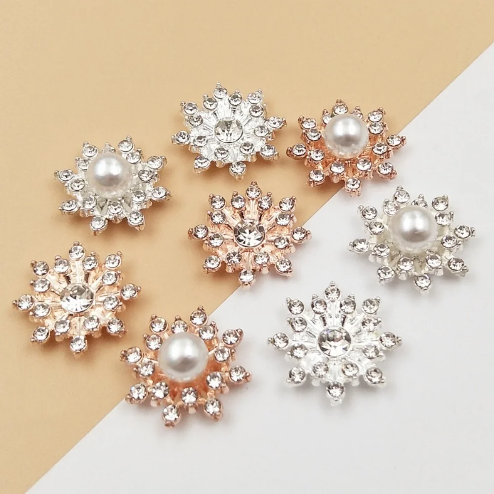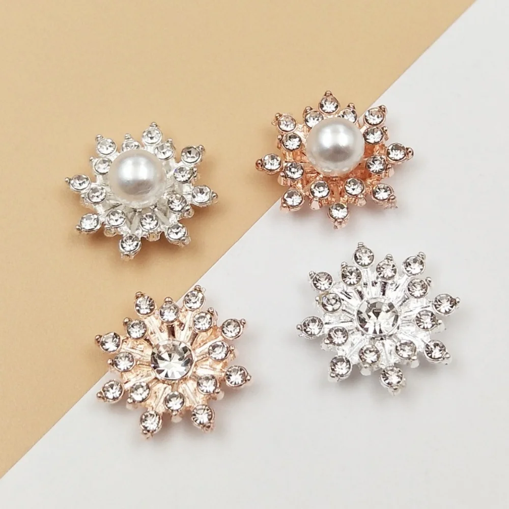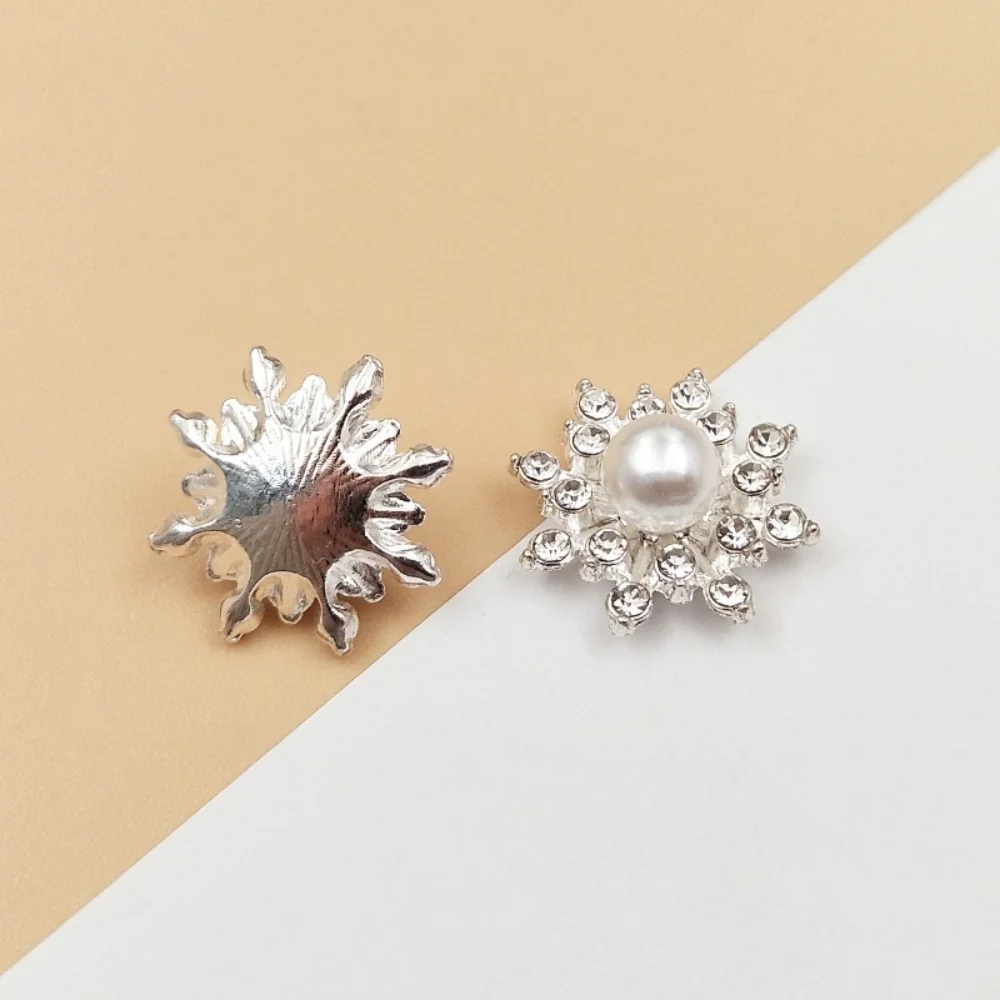 10Pcs/set Pearl Rhinestone Flower Jewelry Accessories Hair Making DIY Jewelry Findings Accessories 15X15mm