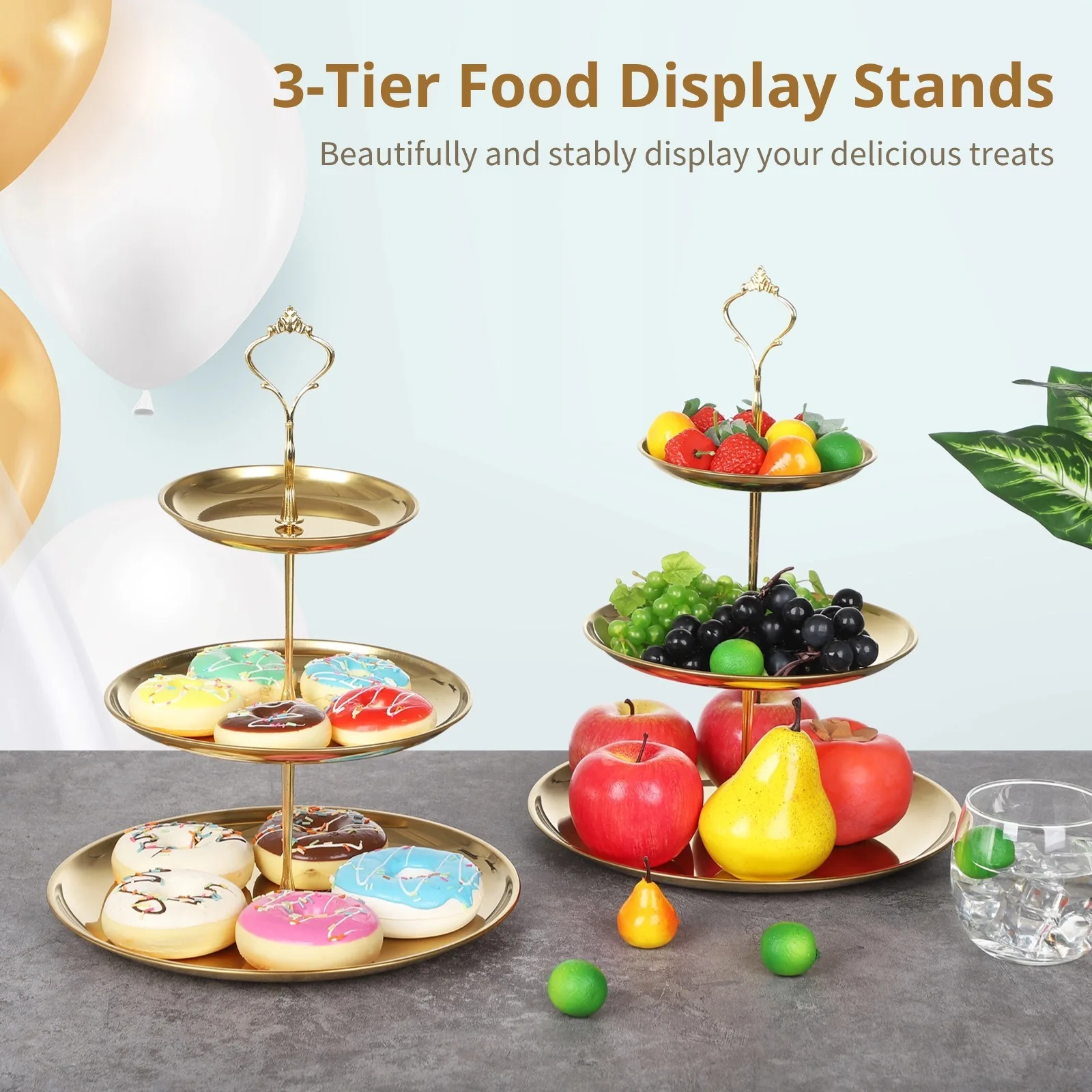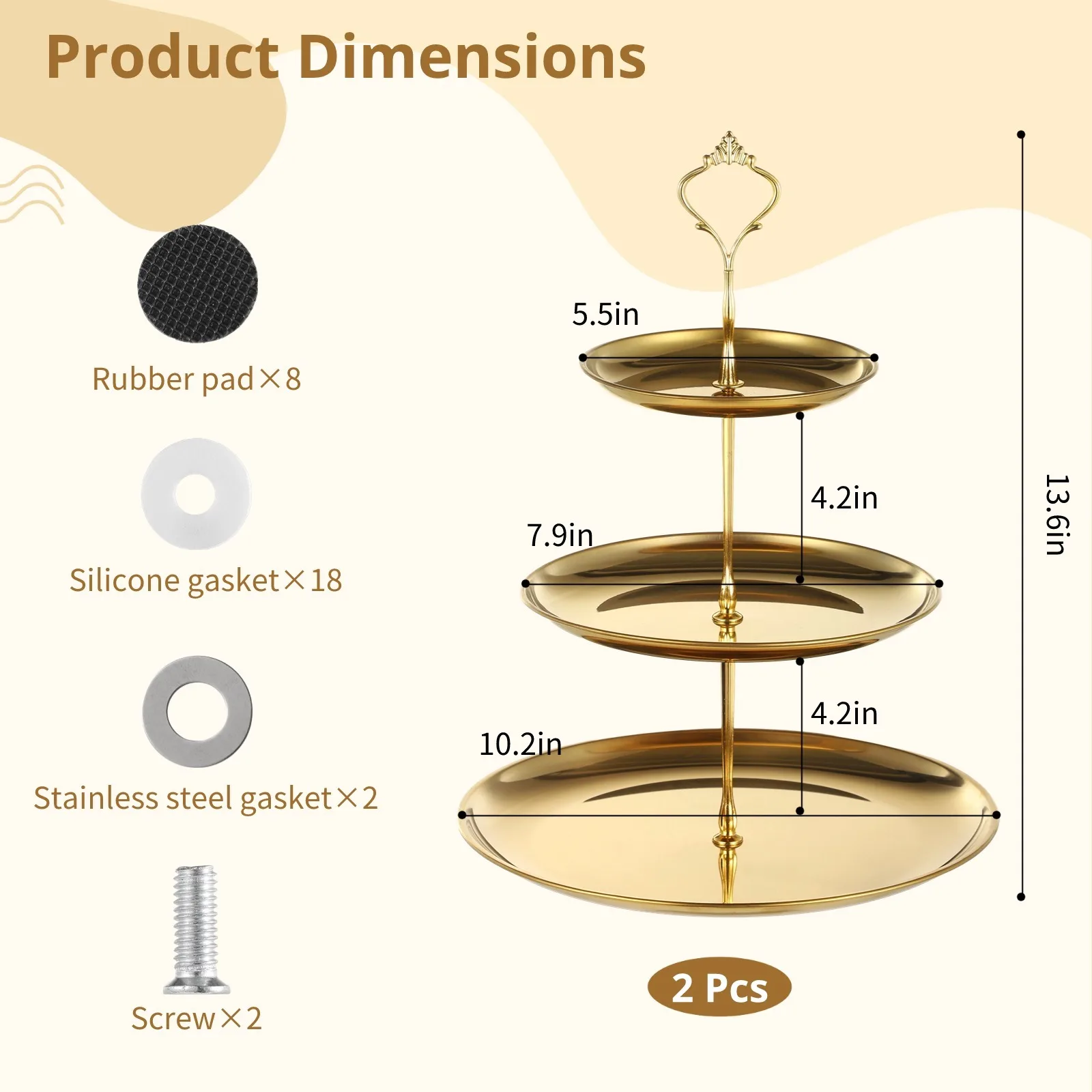 2Pcs 3-Tier Cupcake Display Stands Gold Cupcake Towers Metal Tiered Dessert Stands Table Display Serving Trays Decor Holders