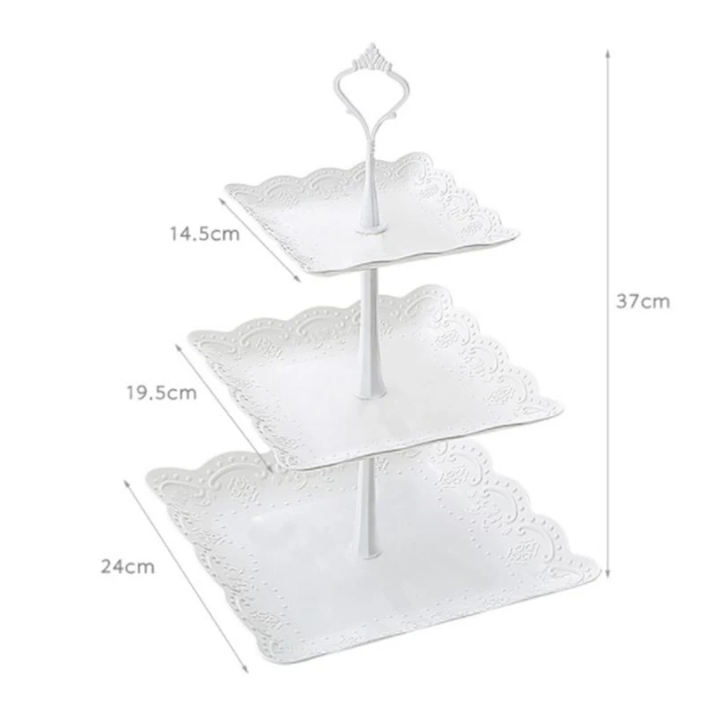 3 Tier design : The cake stand has 3 tiers in a tower shape, making good use of space, large capacity, holding a lot of food once.