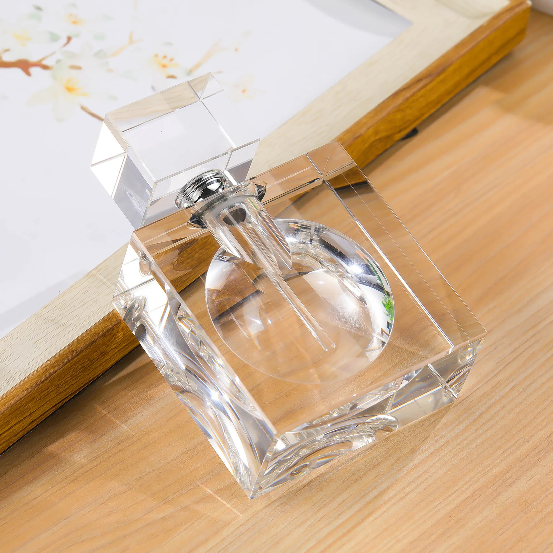 30ml Modern Large Capacity Square Crystal Perfume Bottle Art Decoration Clear Crystal Glass Perfume Bottle Desktop Ornament Gift