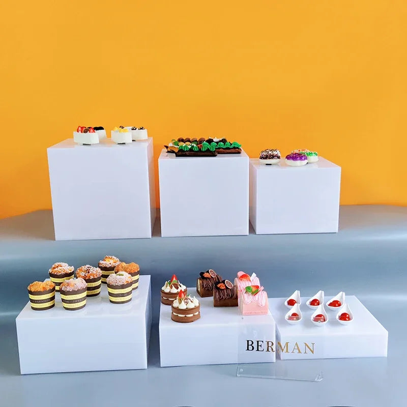 3pcs set square wedding decoration acrylic dessert table set buffet cake snack display stand white acrylic riser