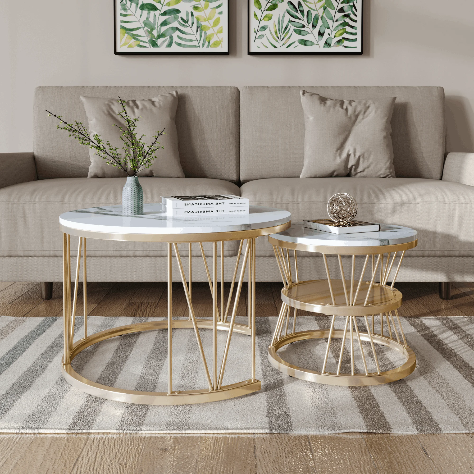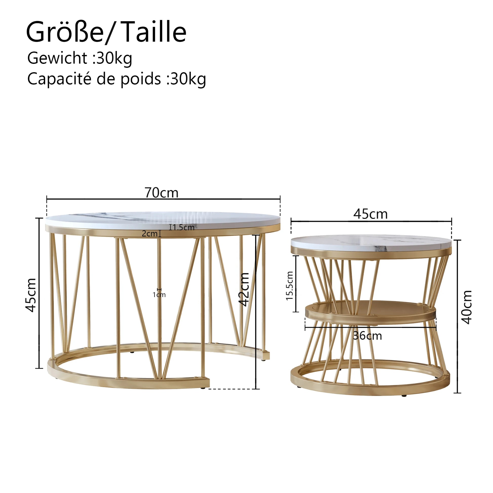 SPACE-SAVING: The modern round coffee table set includes 2 small tables, and the nesting combination allows you to easily put them together or use them separately. This round coffee table set will meet your different needs.