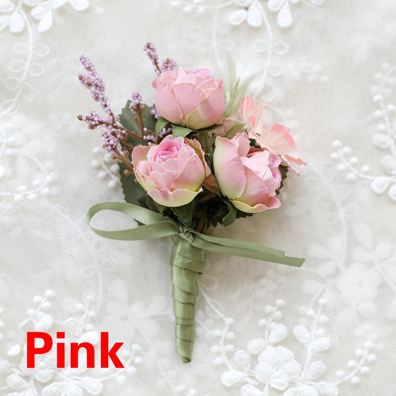 Artificial Silk Plastic Rose Flowers Groom Boutonniere Man Pin Suit Corsage Bridal Wedding Wrist Flower Party Decorations