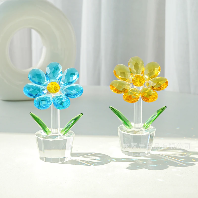 Crystal Sunflower Figurine flowers Collectible Holiday Gifts Birthday Gift Home Table Decor Wedding Decoration Home Ornament
