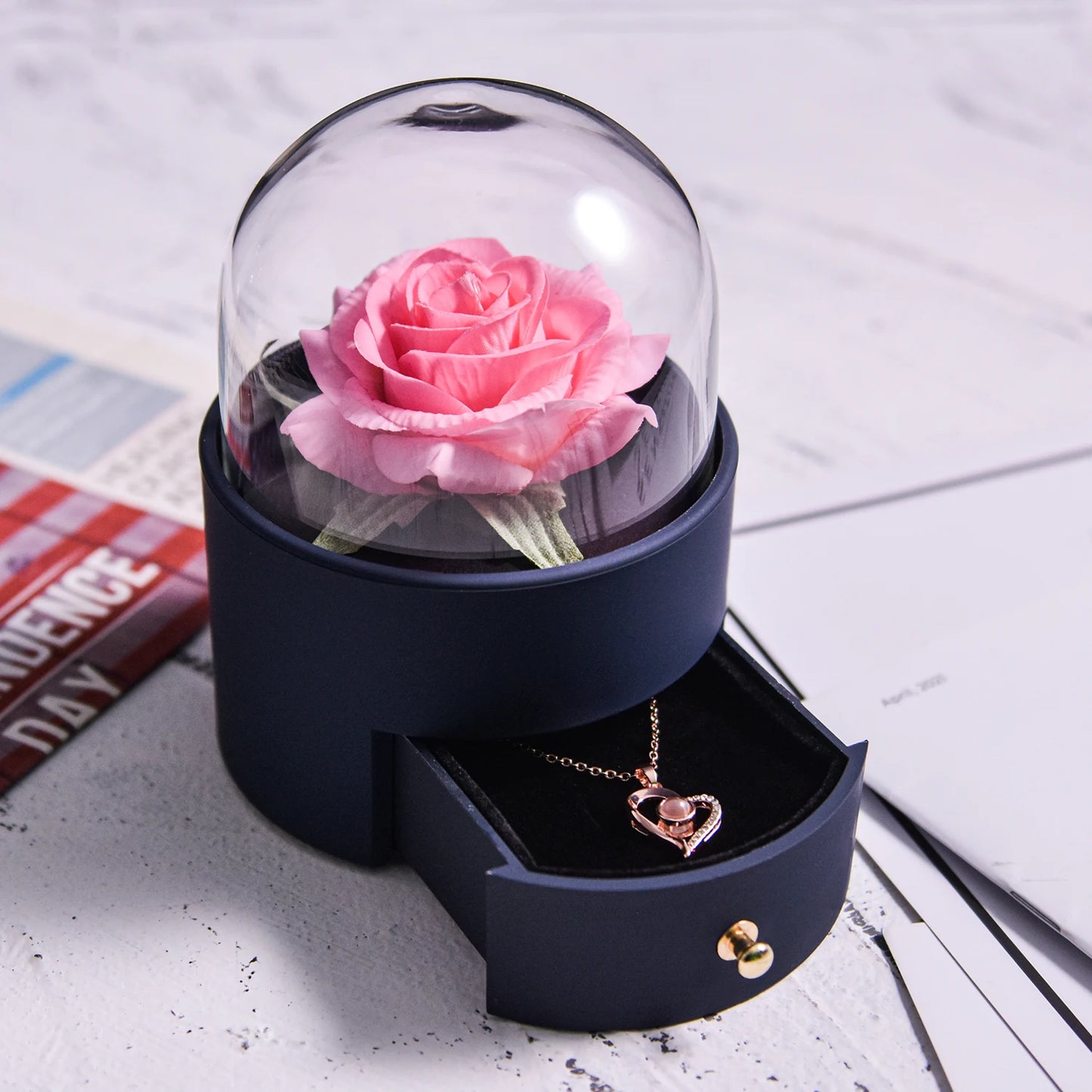 Eternal Rose Jewelry Box Preserved Flower Ring Storage Case with Necklace Forever Love Birthday Anniversary Gift for Girls Women