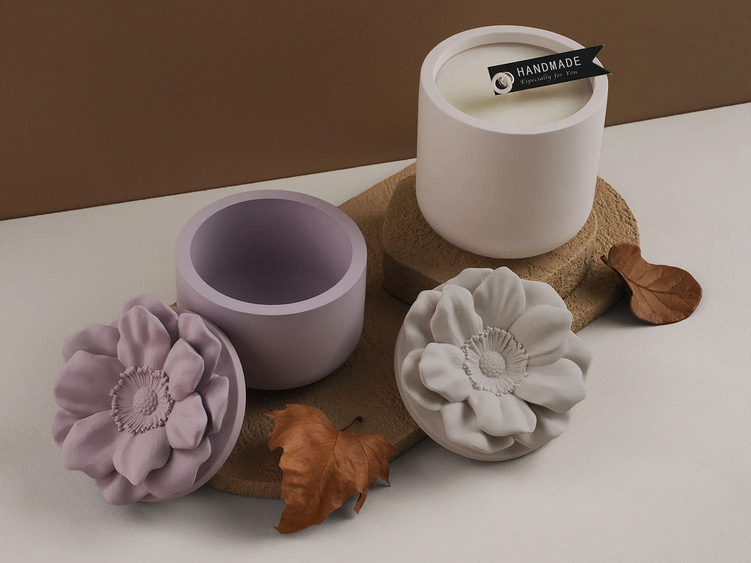 Flower Candle Jar Silicone Mold DIY Handmade Cylinder Flowerpot Plaster Resin Storage Box Craft Casting Molds Home Decor Supplie