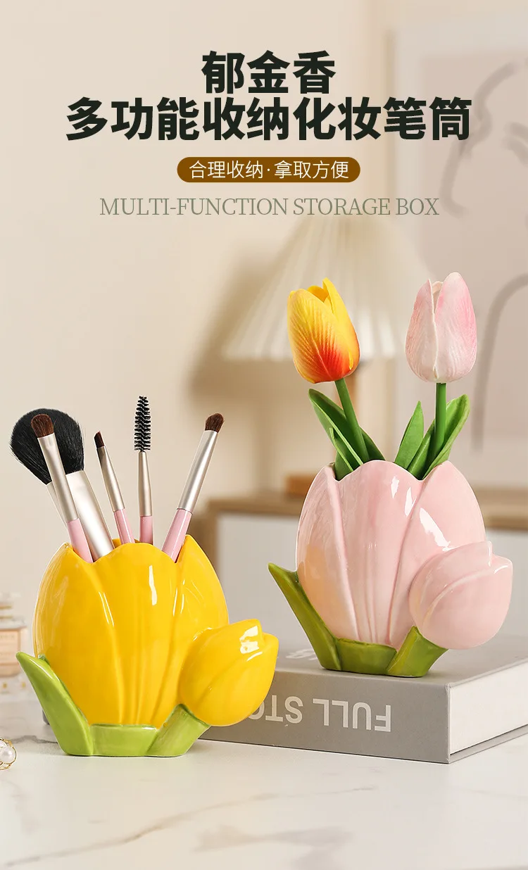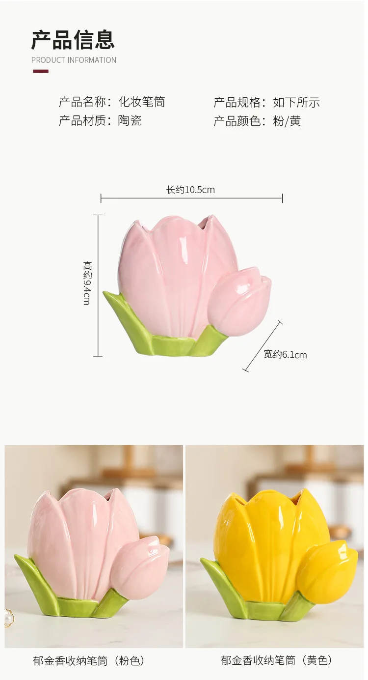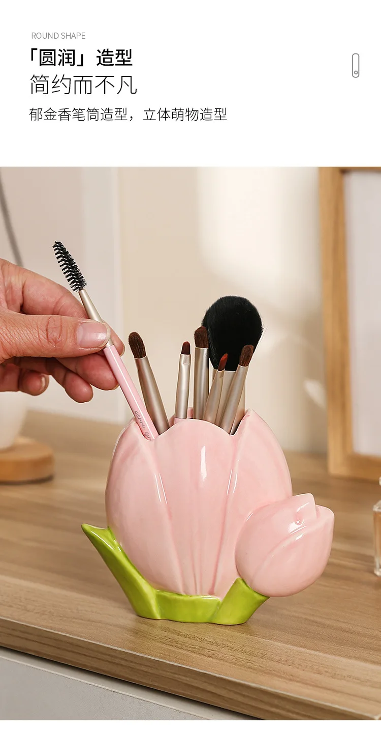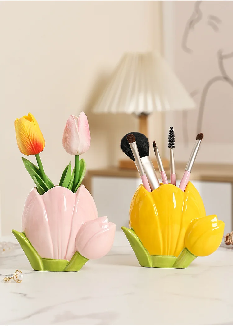 Flower Ceramic Vase Cute Decoration Living Room Flower Arrangement Table Surface Flower Decoration Makeup Pen Storage Bucket