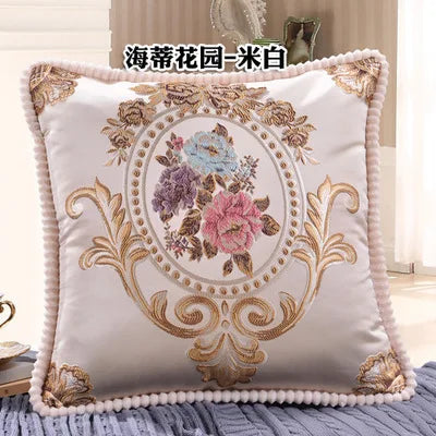 Flowers Embroidery Cushion Cover Embossed Pillowcases Bead String Jacquard Cushion Covers for Living Bedroom Home Decor 48x48cm