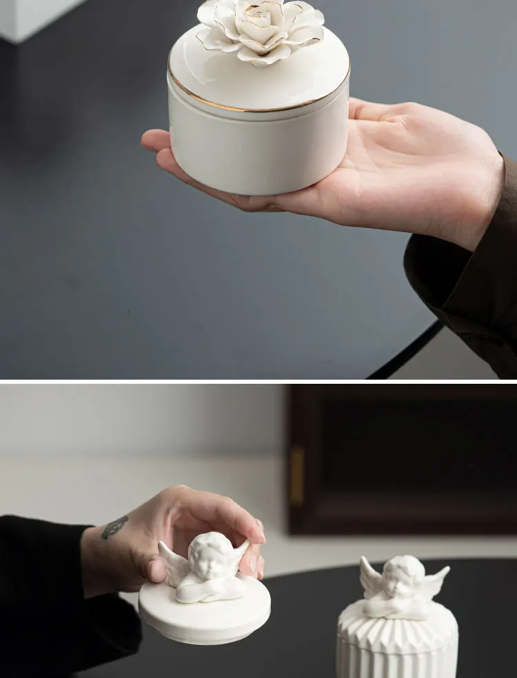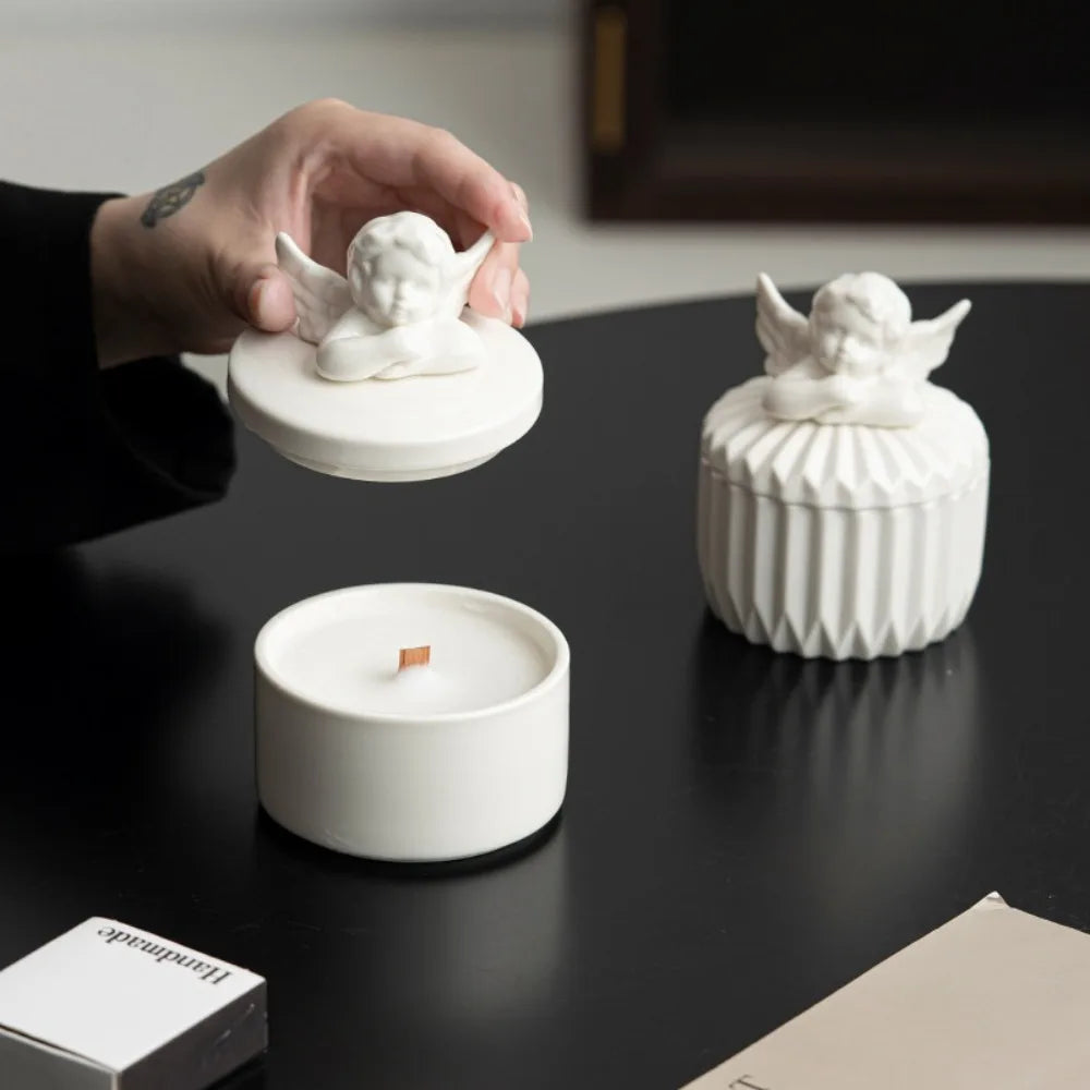 Handmade Gardenia Fragrance Nordic Angel Fresh Aromatherapy Ceramic Candle Cup Home Interior Decor Ornament Crafts Deodorize