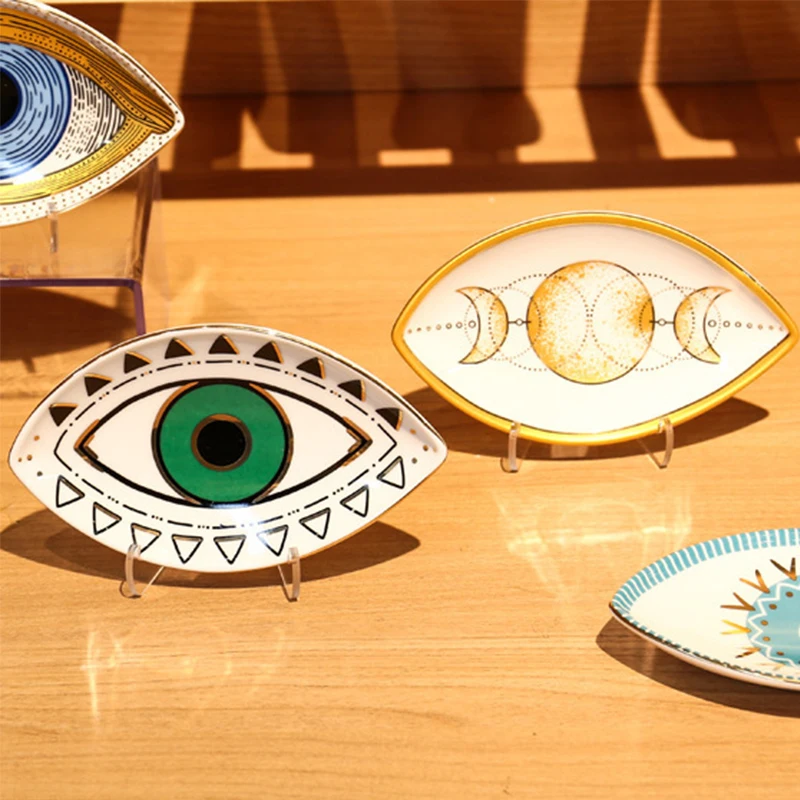Jewelry Dish Ceramic Storage Trays Trinket Dish Ring Dish Evil Eye Plate Jewelry Organizer Containers Home Desktop Decor