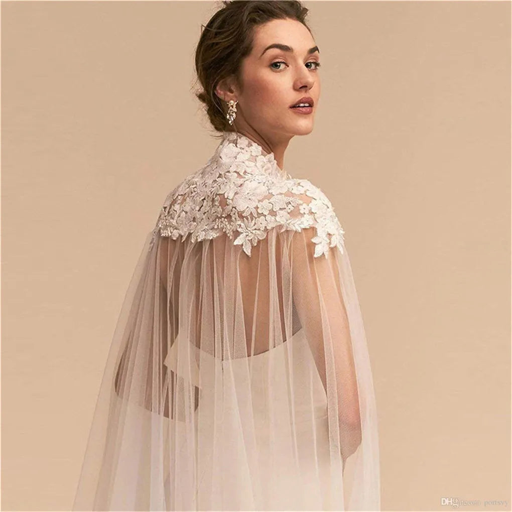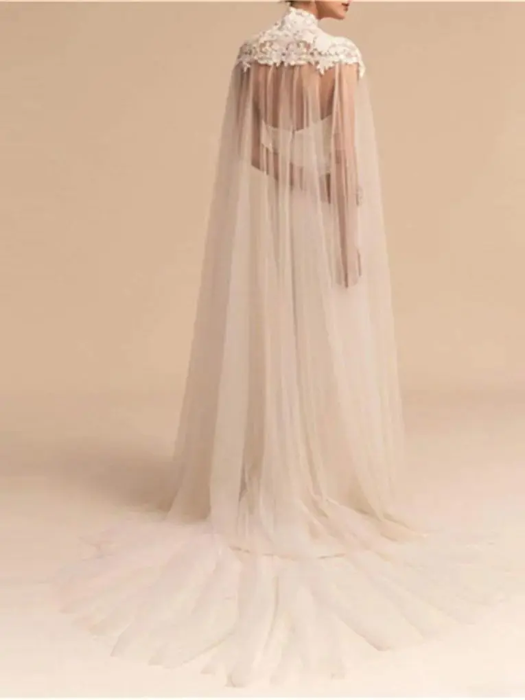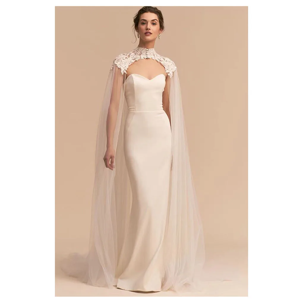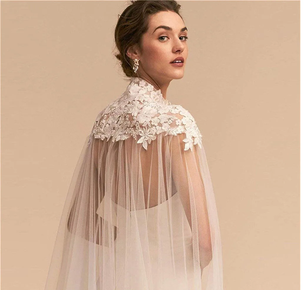 Lace Applique Wrap Shoulder Wedding Headdress Women's Standing Collar Light Luxury Wedding Dress Mesh Shawl Transparent Cape