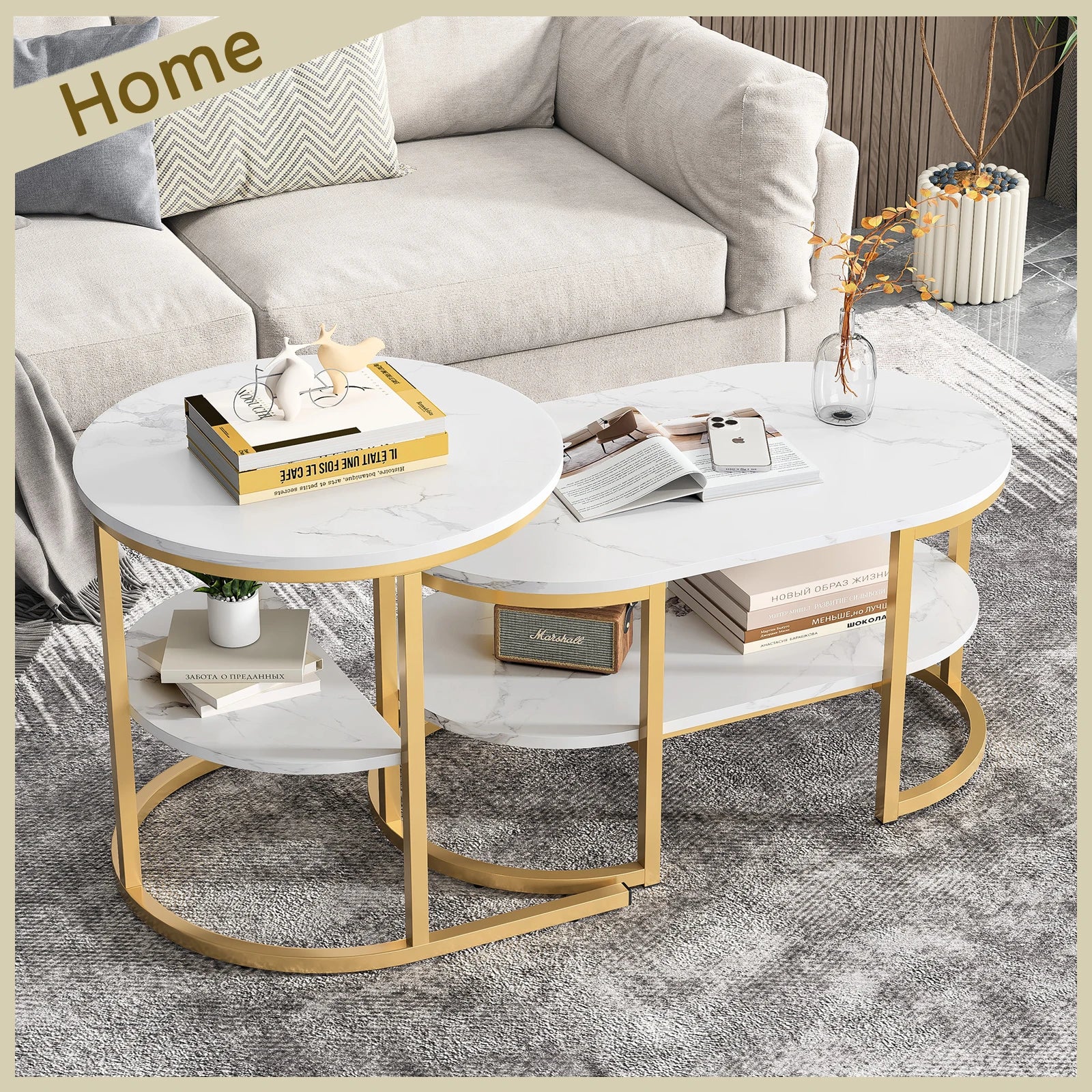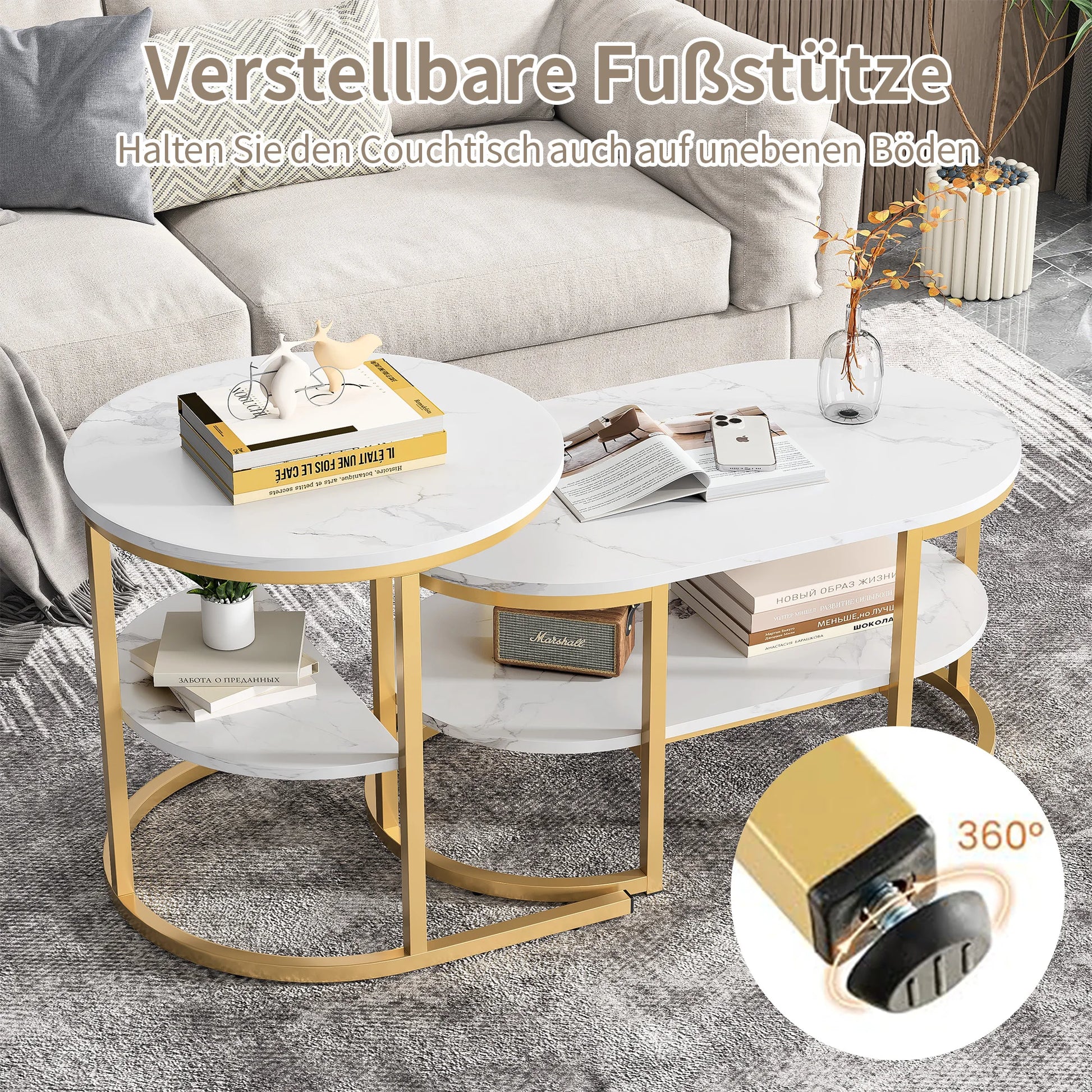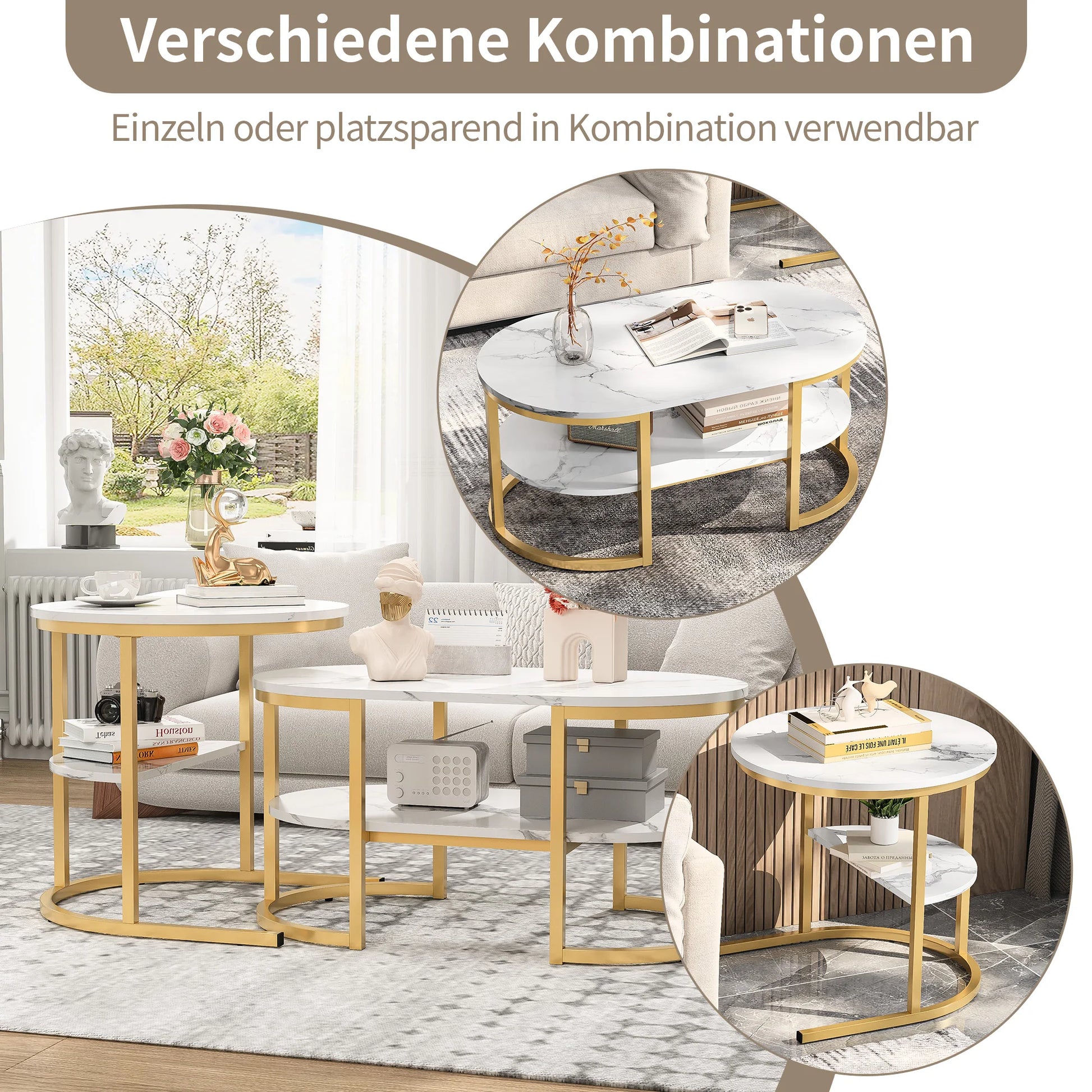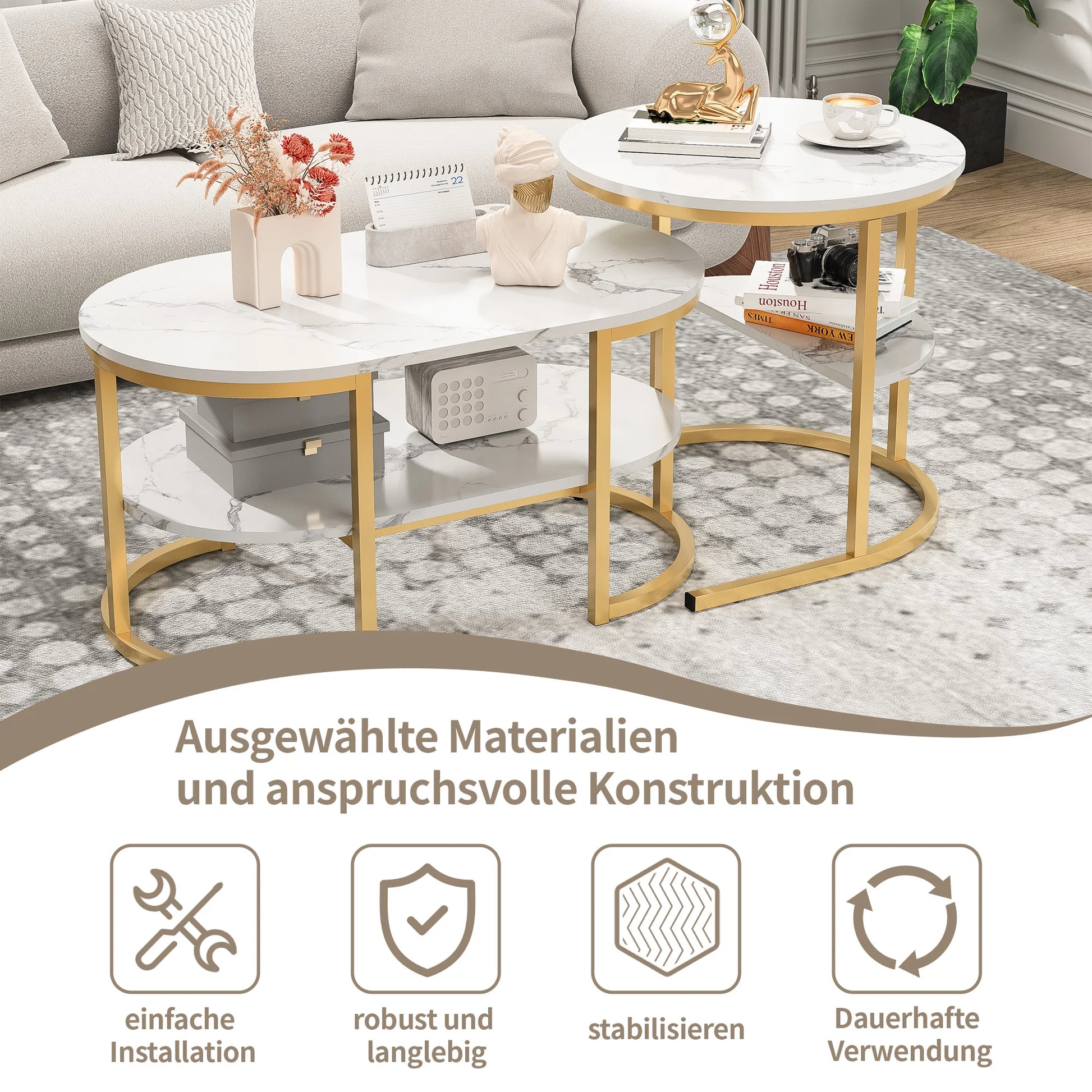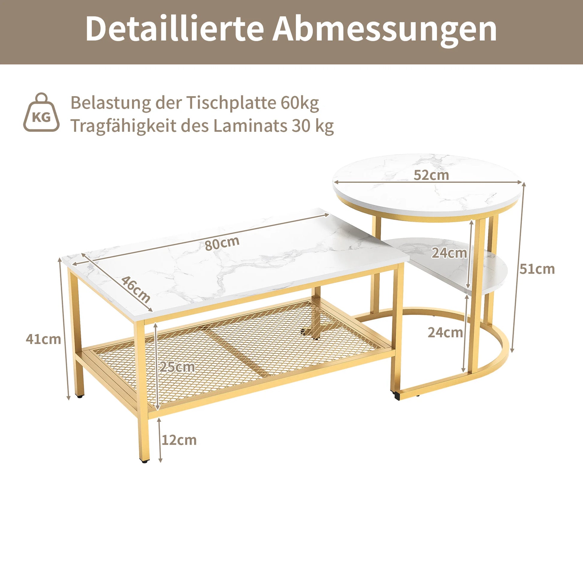 [Unique design] Our coffee table set with luxurious white marble look and gold finish is a real eye-catcher. These stylish coffee tables are the perfect addition to your interior and fit into any room.