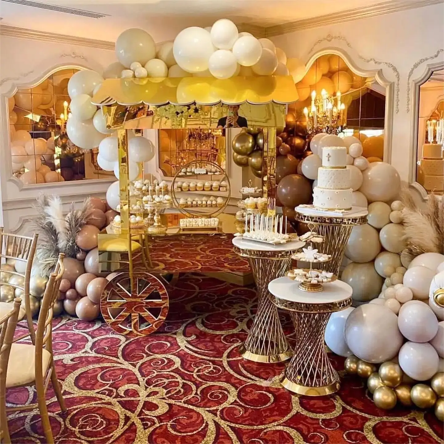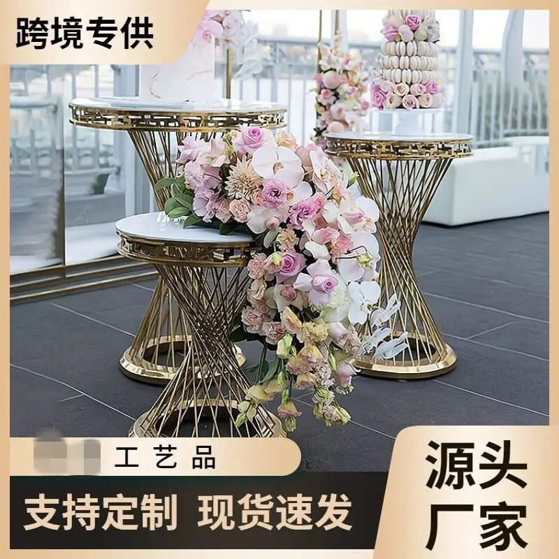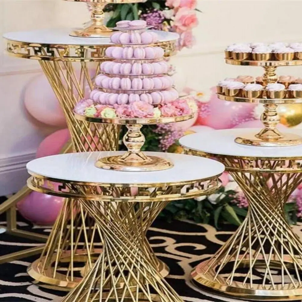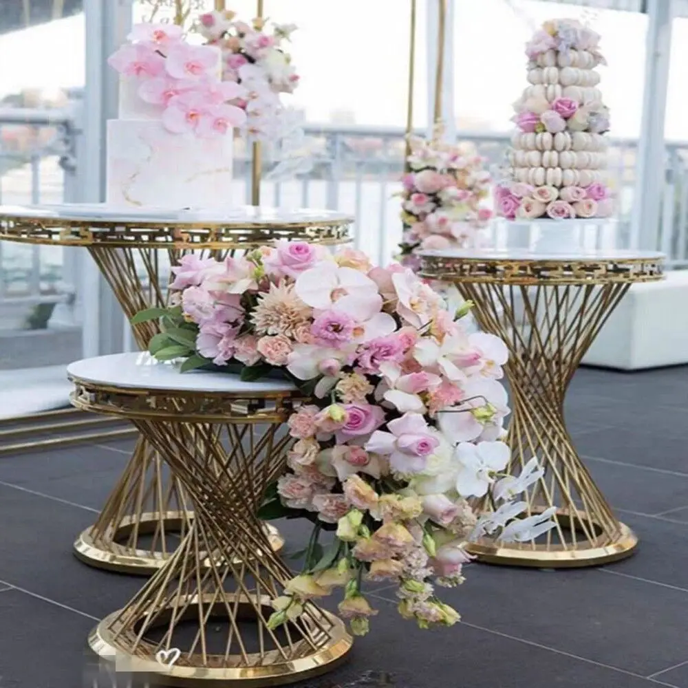 Luxury Wedding Decoration French Gold Dessert Table Cylinder Flower Stand Cake Holder For Party Banquet Hall Site Layout Props