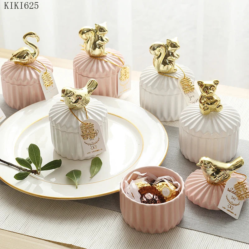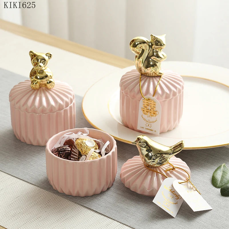 Nordic Golden Animal Ceramic Storage Jar Wedding Holiday Chocolate Candy Jar Dressing Table Jewelry Storage Box Home Decoration
