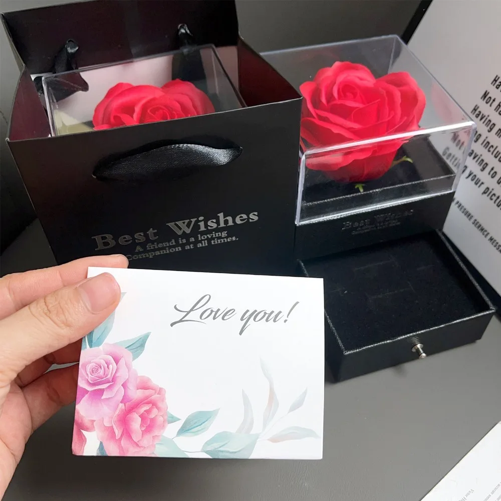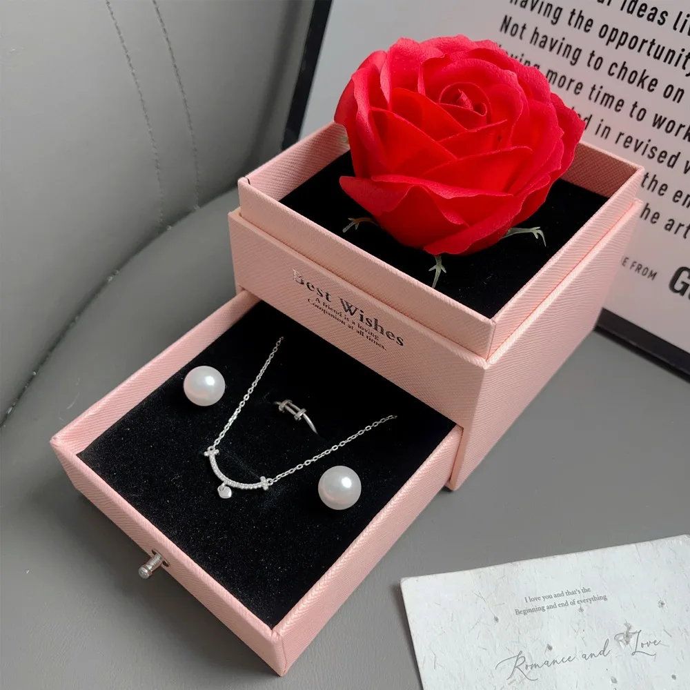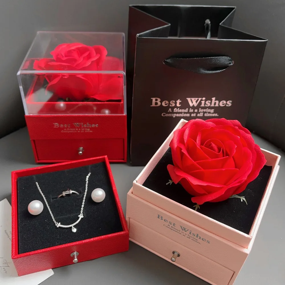 Rose Flower Gifts Box for Women Girlfriends New Fashion Valentine Jewelry Gift Ring & Necklace Gift Boxes Accessory Storage