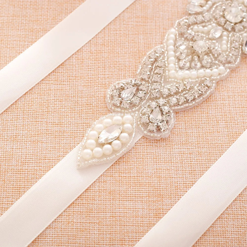 SESTHFAR Crystal Pearls Bridal Belt Hand Beaded Wedding Belts Silver Rhinestones Bridal Sash For Wedding Dresses