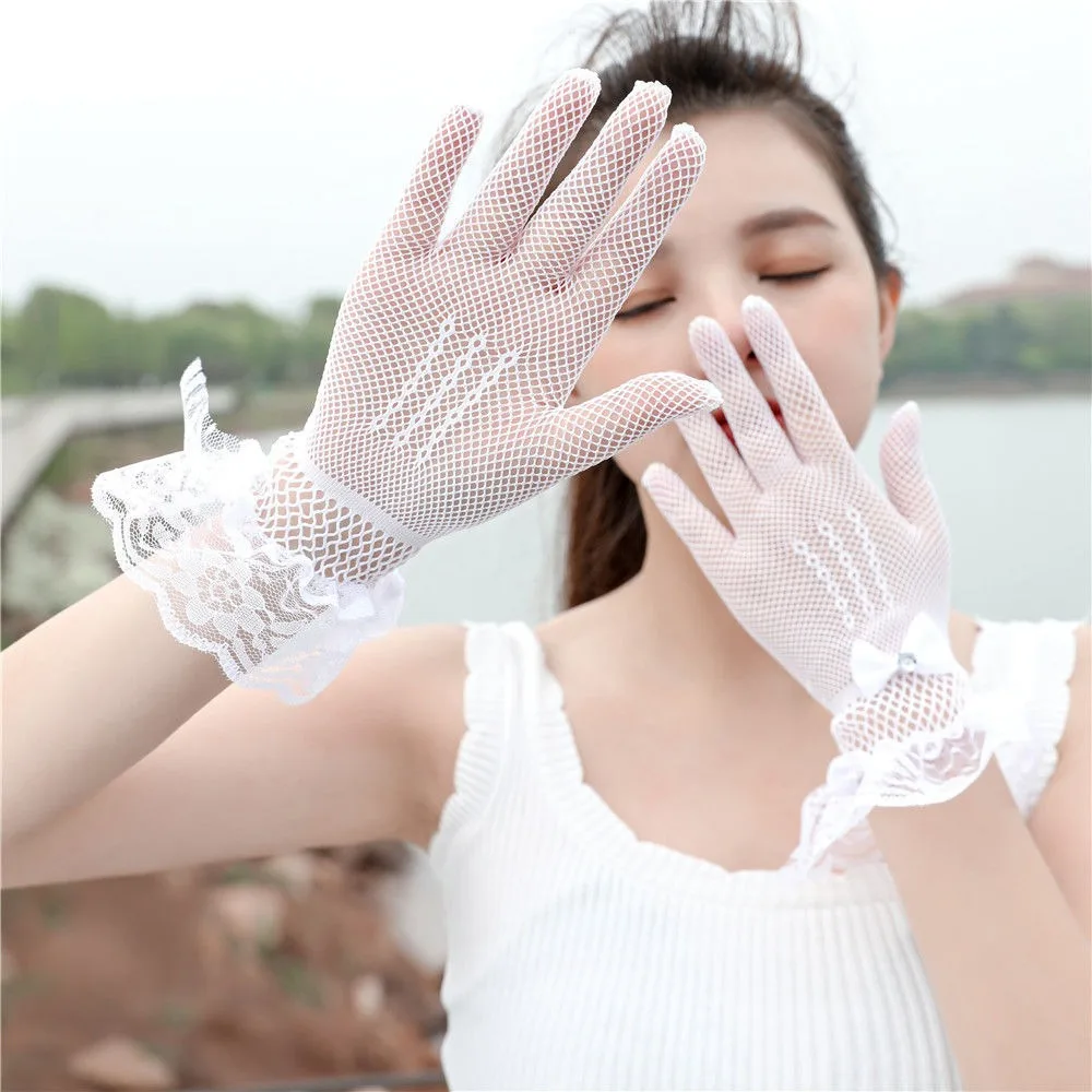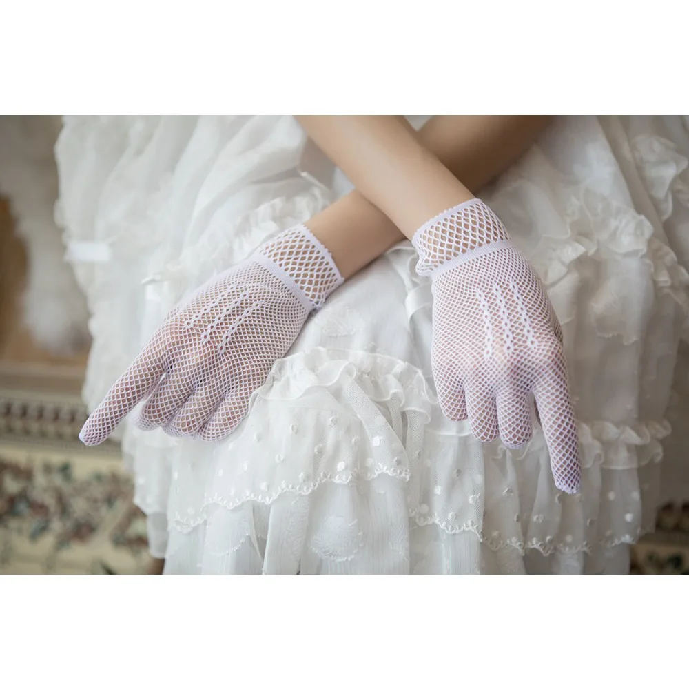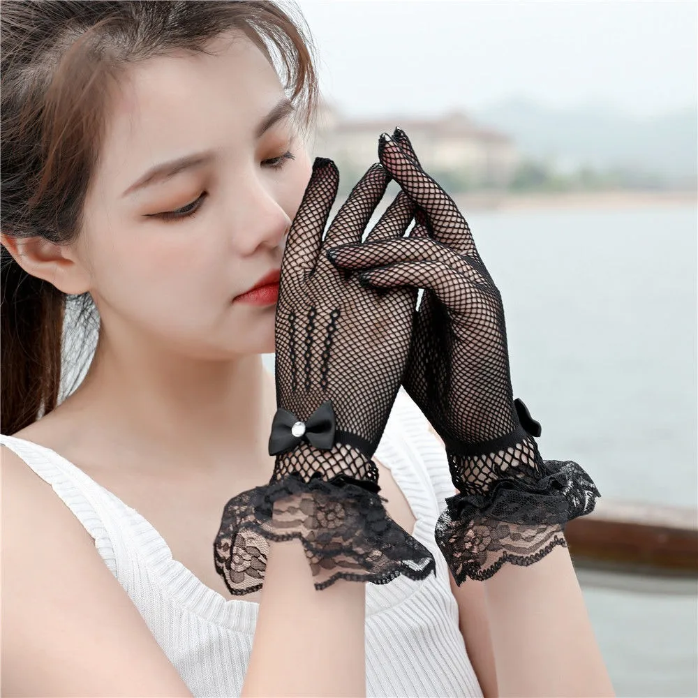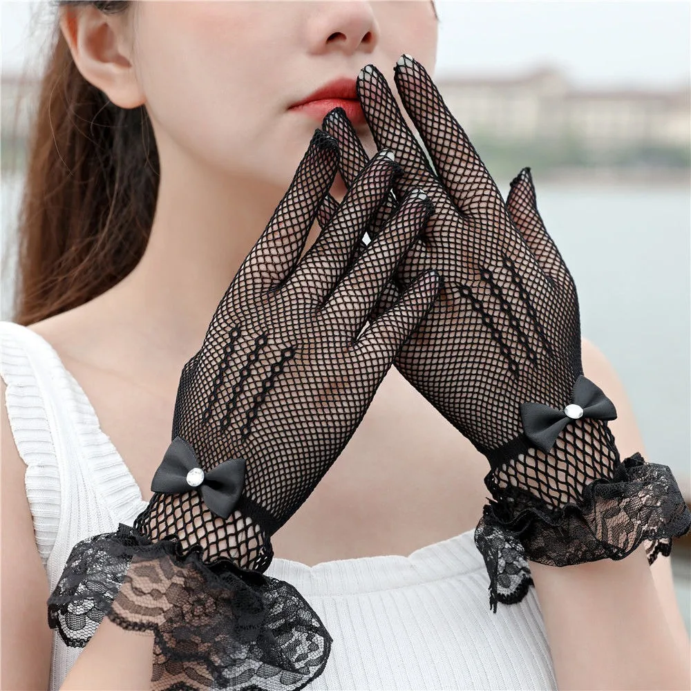 Sexy Transparentes Dot Print Black White Mesh Tulle GloveSpring Summer Thin Short Glove Club Prom Party Dancing Dress Glove