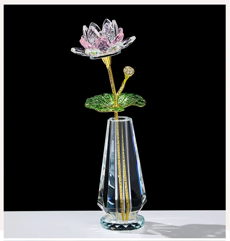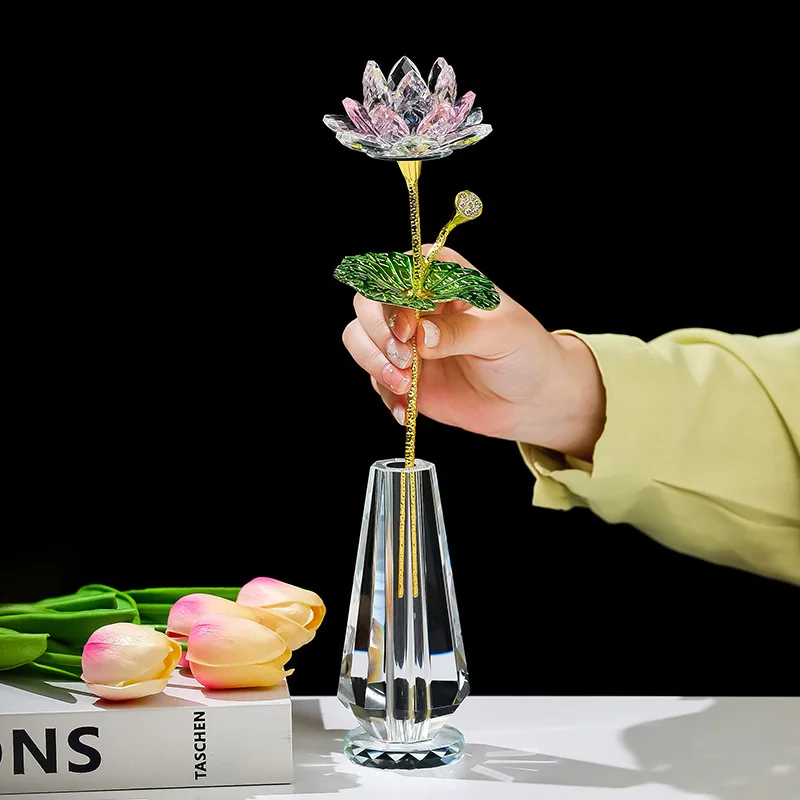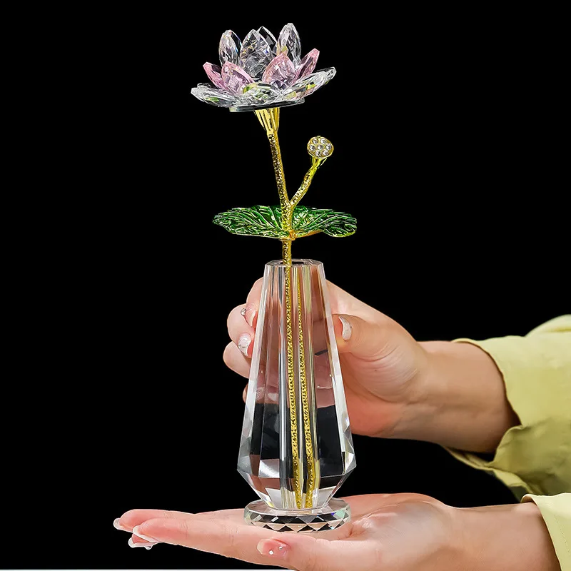 Sparkle Crystal Lotus Flower Figurine Handmade Glass Lotus Flowers Art Wedding Decor Feng Shui Home Table Decor