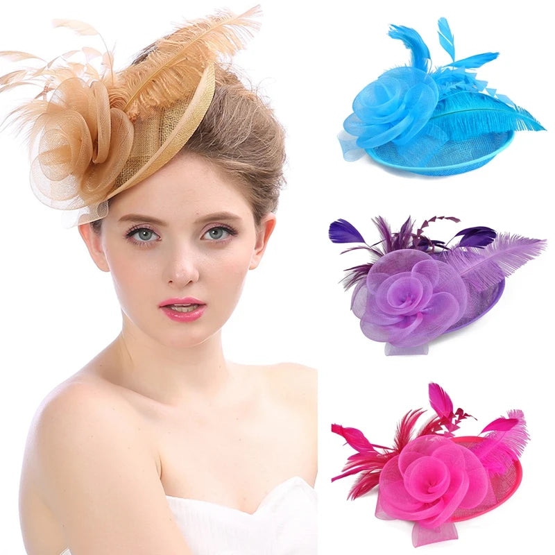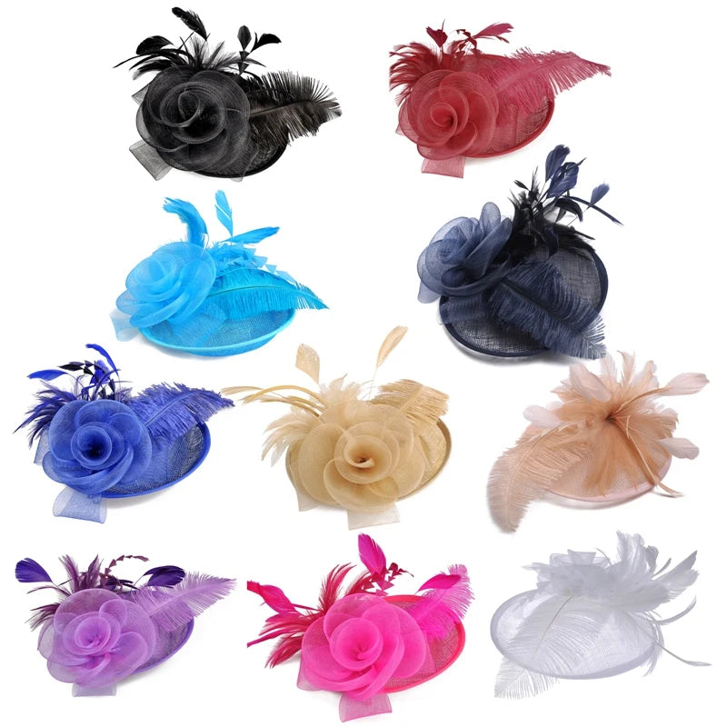 Wedding Cocktail Tea Party Headwear Women Floral Hair Clip Elegant Fascinators Caps Mesh Flower Feather Cap New Year Fashion