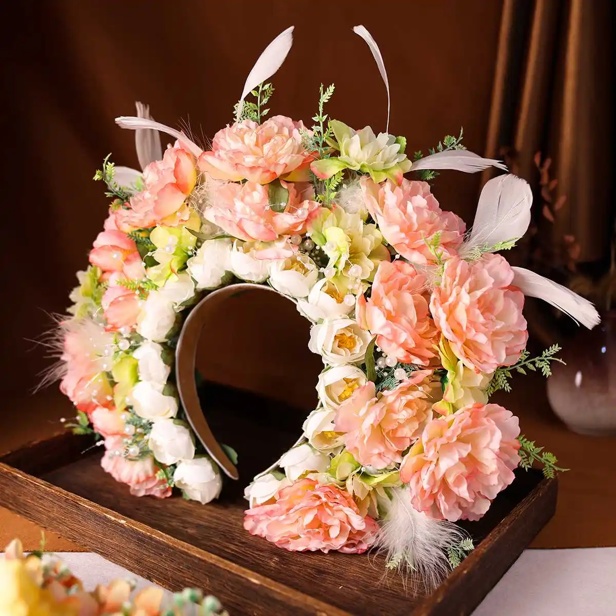 Women Girl Hair Accessories Headband Festival Big Flower Crown Wreath Decoration For The Hair Wedding Party Bride Headwear