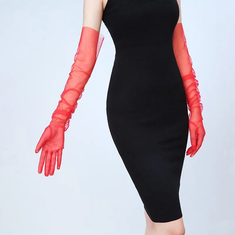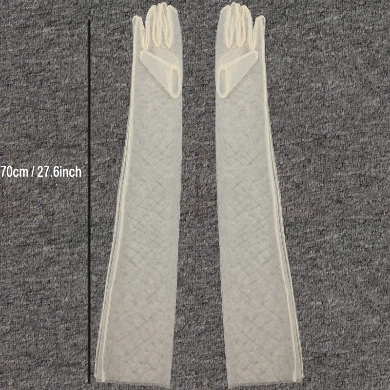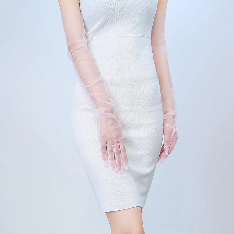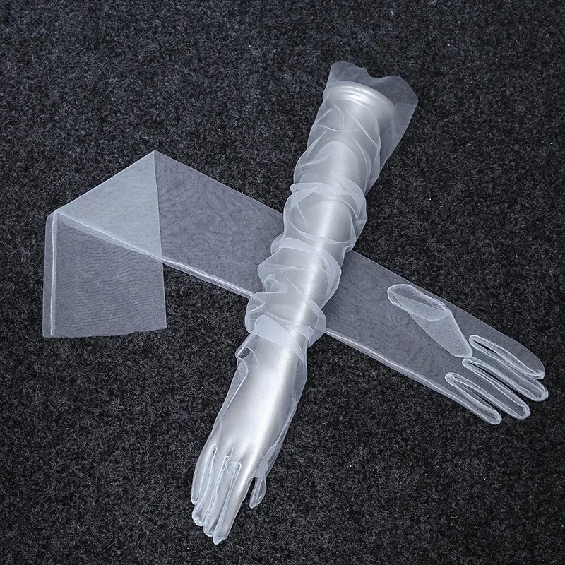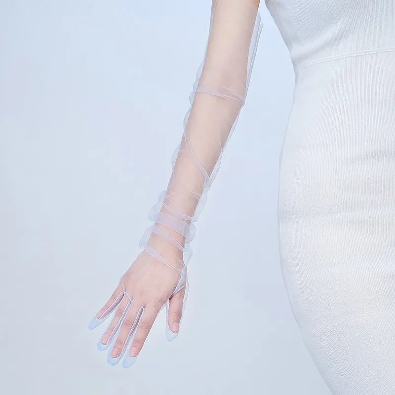 Women Long Sheer Tulle Gloves for Bridal Wedding Accessories Party Transparent Finger Gloves