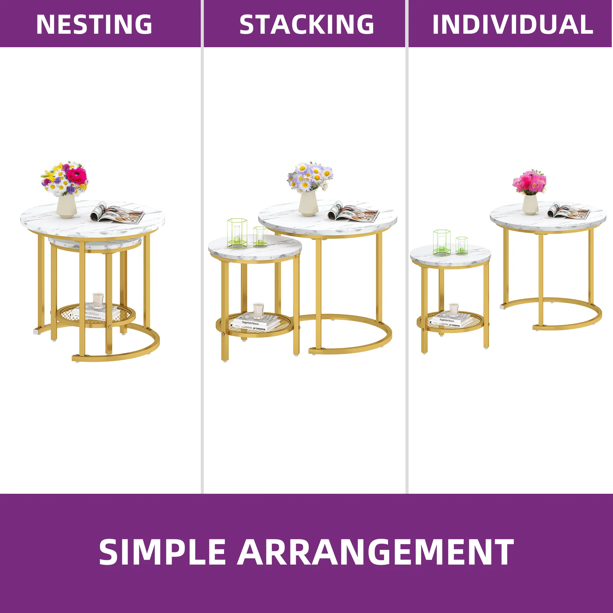 YITAHOME 2-Piece Nesting Coffee Table Set - Round Wood Top & Metal Frame with Storage, 60x60x50.5cm, Easy Assembly